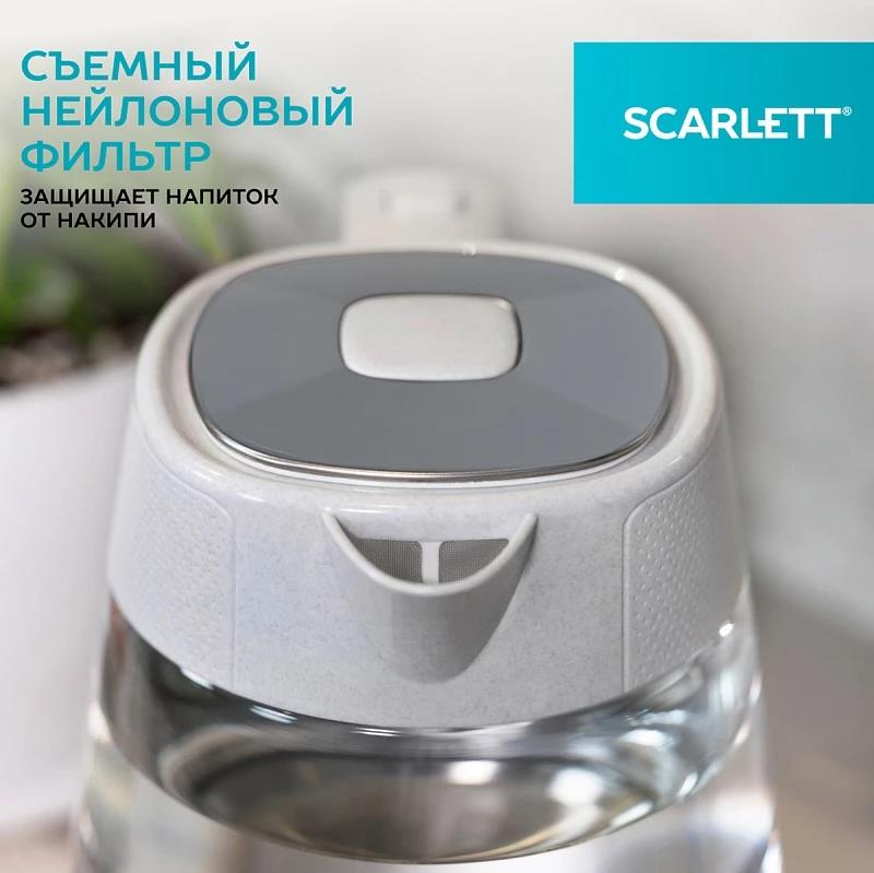 Электрический чайник Scarlett SC-EK27G104 (2200 Вт/1,7 л /стекло, пластик/прозрачный, белый)