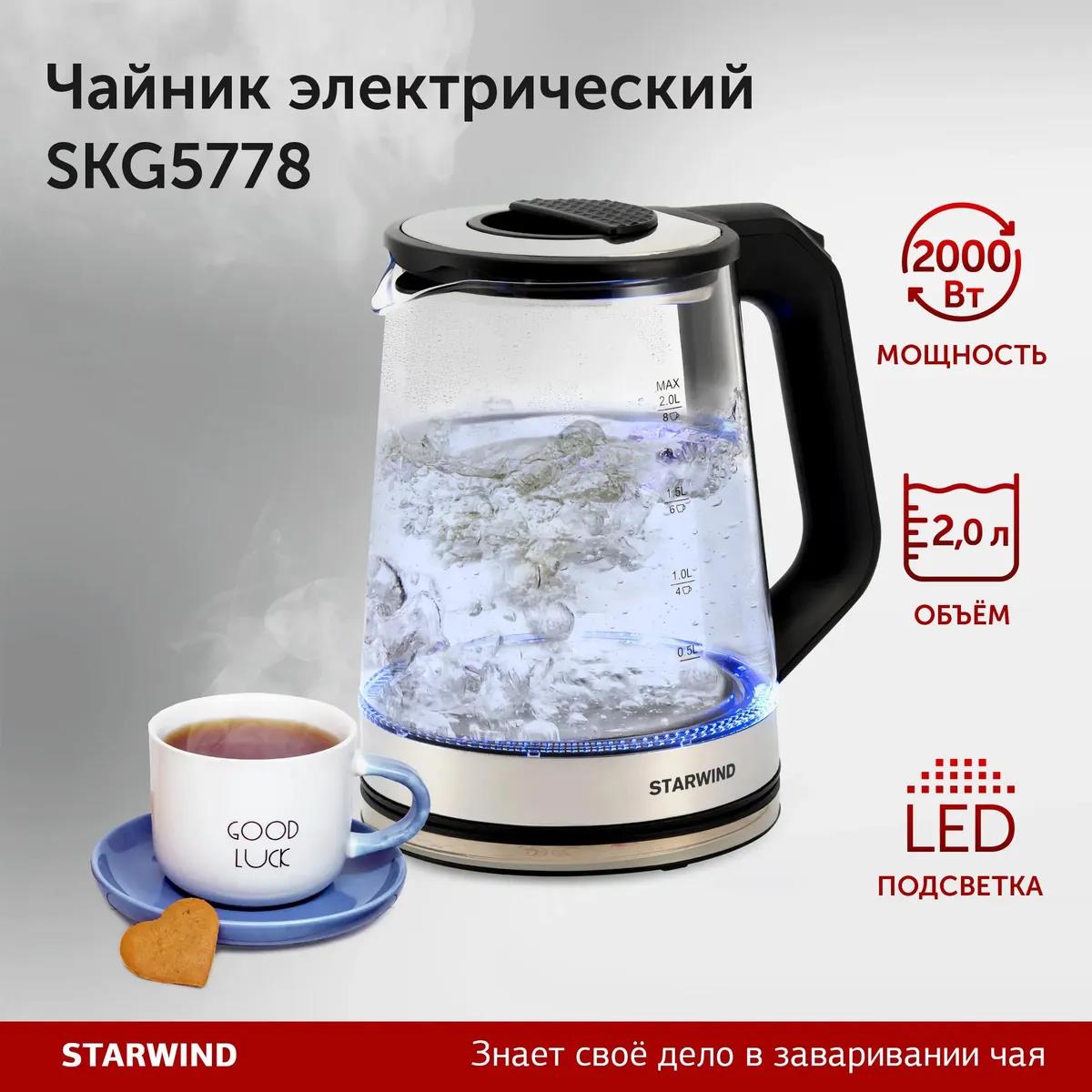 Электрический чайник STARWIND SKG5778 (2000 Вт/2 л /стекло/прозрачный, черный) - Интернет-магазин У Гриши: бытовая техника, электроника, товары для дома и др.