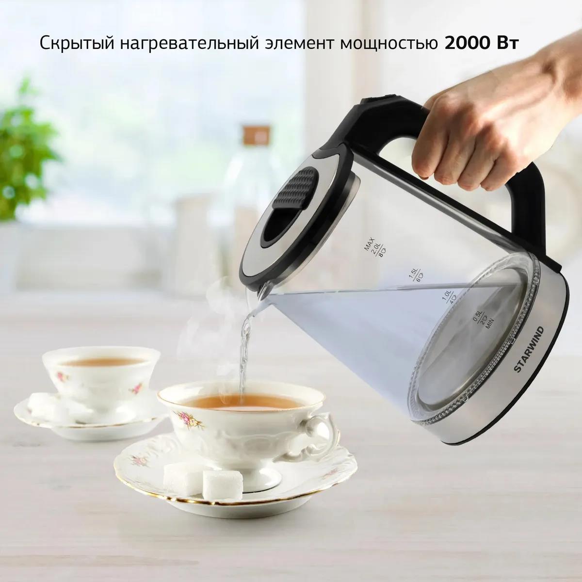 Электрический чайник STARWIND SKG5778 (2000 Вт/2 л /стекло/прозрачный, черный)
