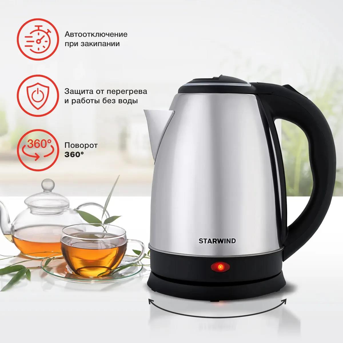 Электрический чайник STARWIND SKS1771 (1700 Вт/1,8 л /металл, пластик/черный, серебристый) - Интернет-магазин У Гриши: бытовая техника, электроника, товары для дома и др.