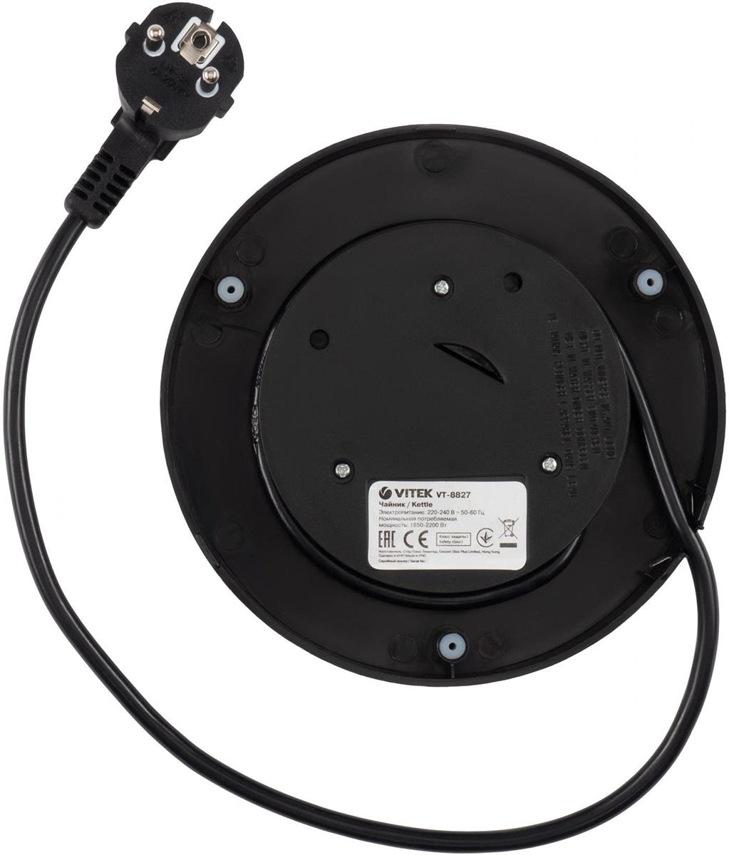 Электрический чайник VITEK VT-8827 (2200 Вт/1,7 л /стекло, металл/прозрачный, черный)