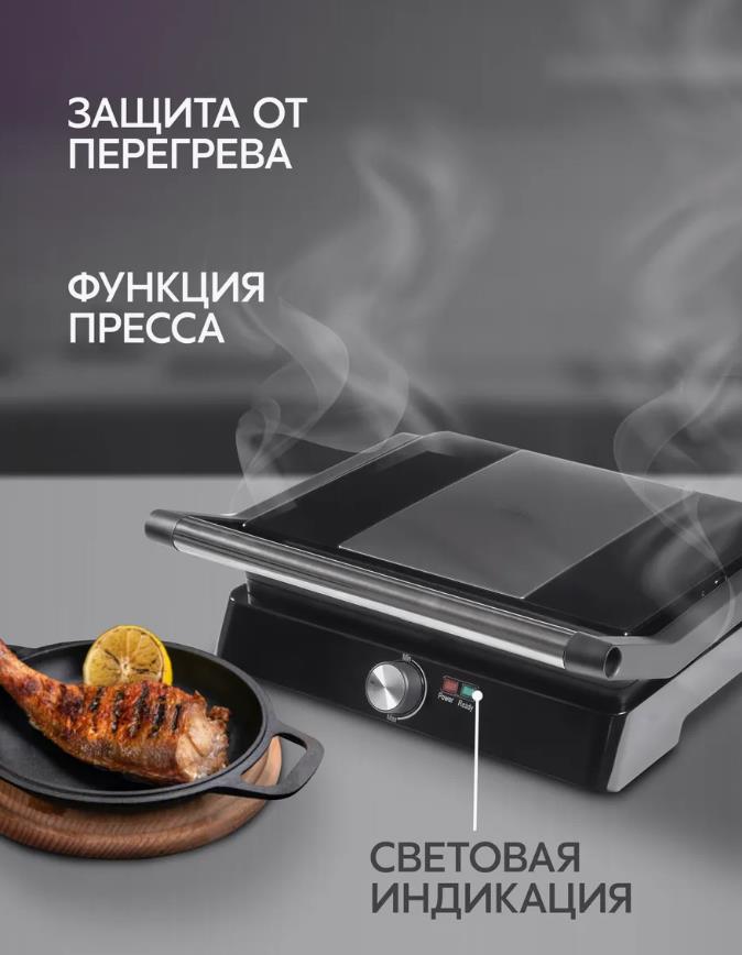 Электрический гриль Oasis GR-1N нержавеющая сталь, чёрный, 2200 Вт