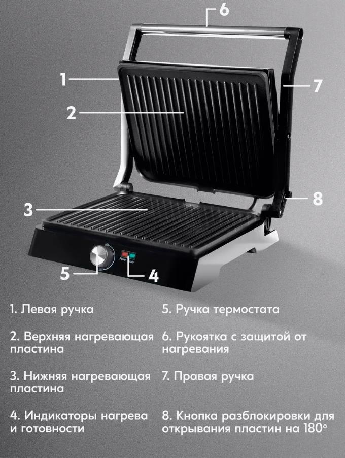 Электрический гриль Oasis GR-1N нержавеющая сталь, чёрный, 2200 Вт - Интернет-магазин У Гриши: бытовая техника, электроника, товары для дома и др.