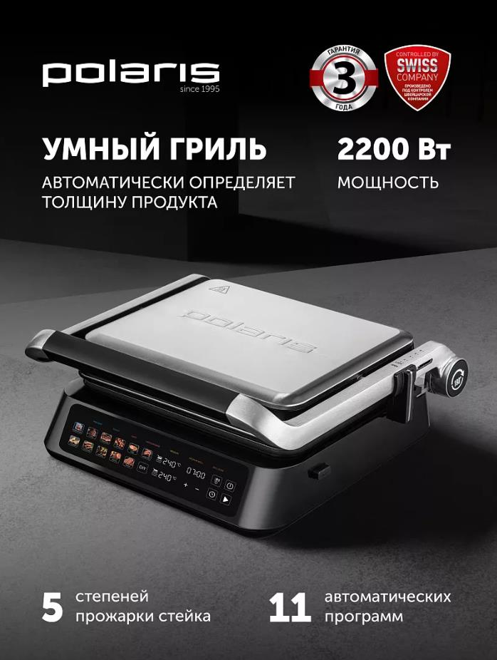 Электрический гриль Polaris PGP 3018 2000Вт серебристый/черный, 2000 Вт - Интернет-магазин У Гриши: бытовая техника, электроника, товары для дома и др.