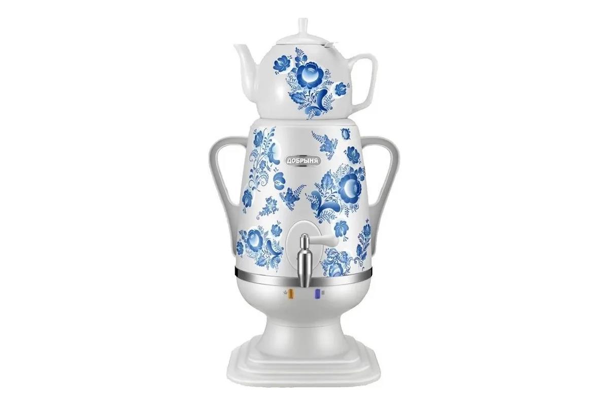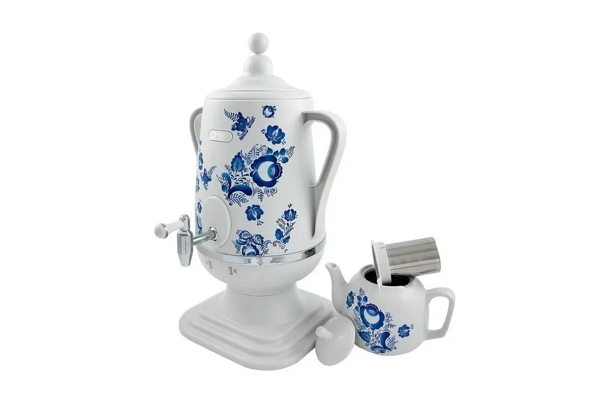 Электрический самовар Добрыня DO-415 ГЖЕЛЬ (4 л /1850 Вт /белый) - Интернет-магазин У Гриши: бытовая техника, электроника, товары для дома и др.