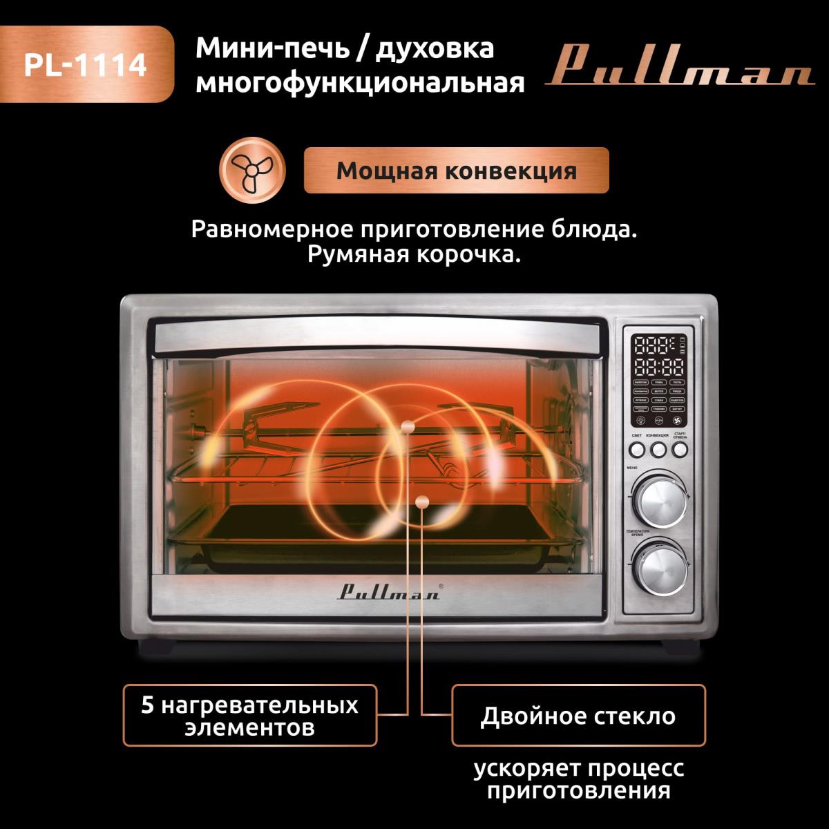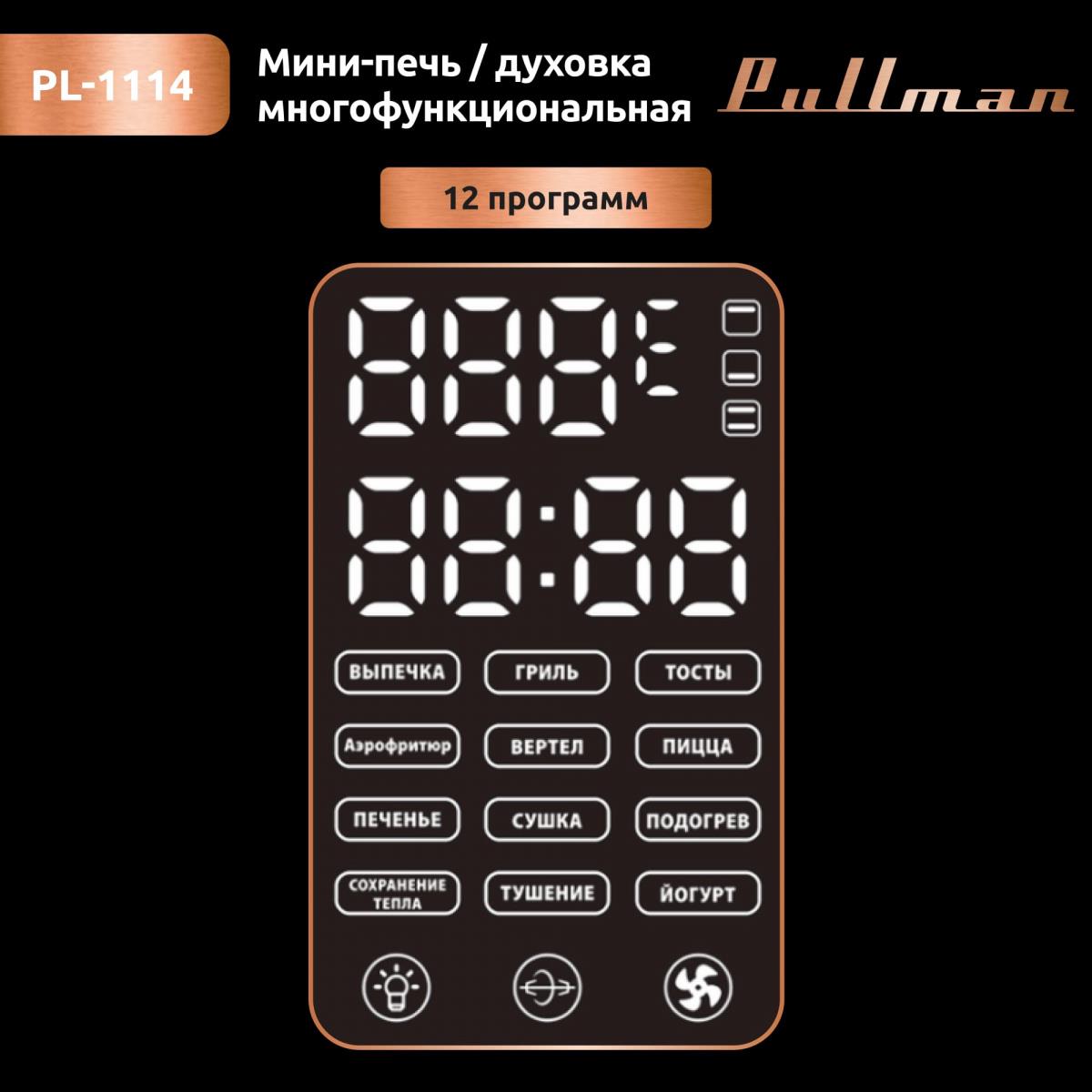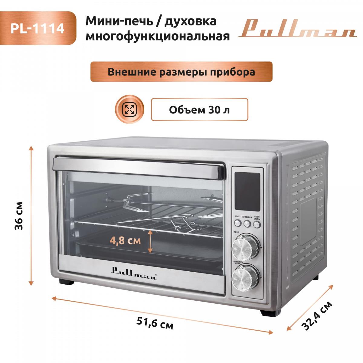 Электропечь Pullman PL-1114. 5 в 1: сушилка, мини-печь, аэрогриль, шашлычница, йогуртница (30 л /2000 Вт /) - Интернет-магазин У Гриши: бытовая техника, электроника, товары для дома и др.