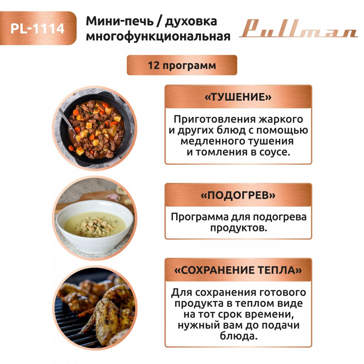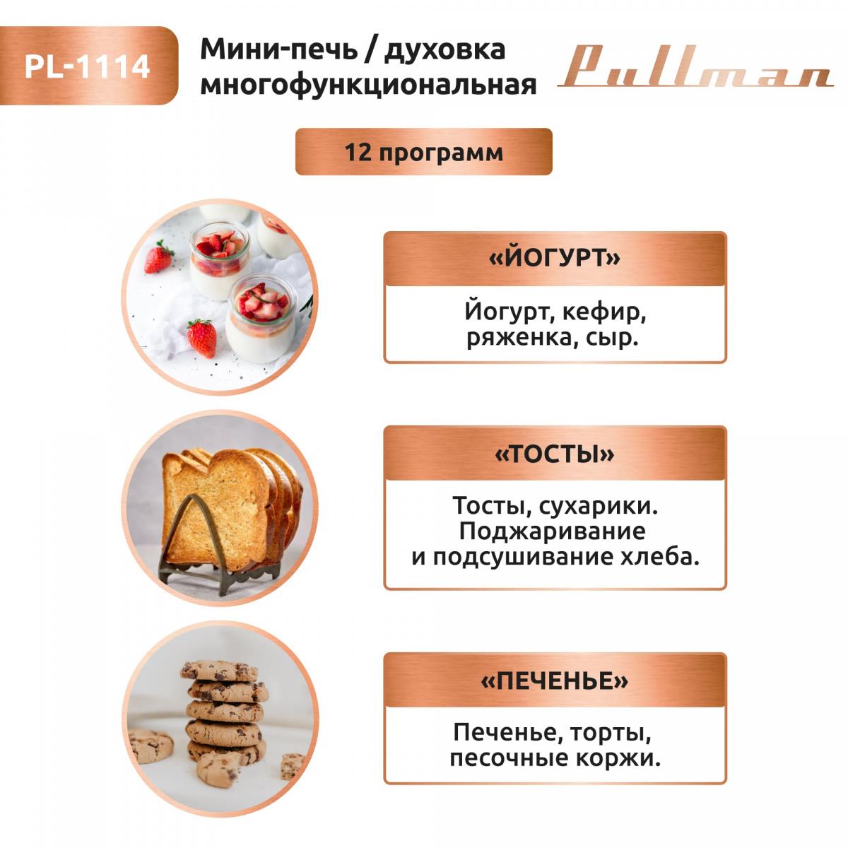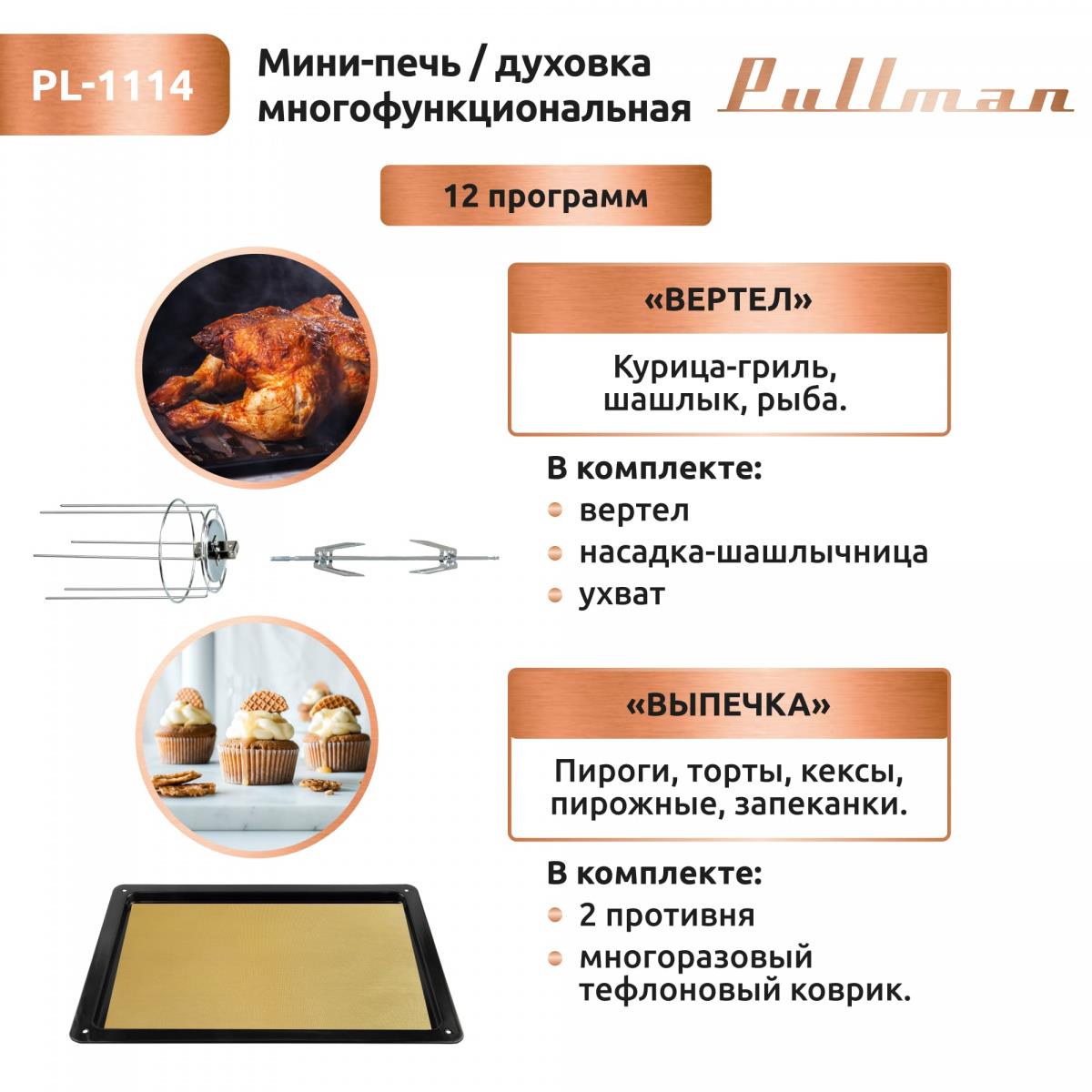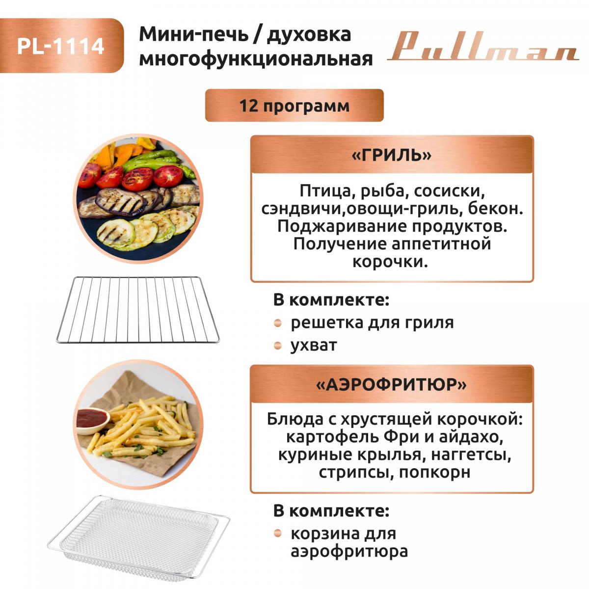 Электропечь Pullman PL-1114. 5 в 1: сушилка, мини-печь, аэрогриль, шашлычница, йогуртница (30 л /2000 Вт /) - Интернет-магазин У Гриши: бытовая техника, электроника, товары для дома и др.