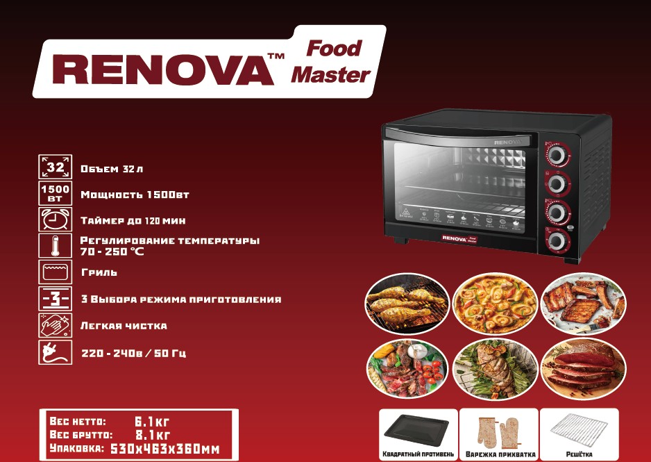 Электропечь Renova MO-32GTB1 (32 л /1500 Вт /черный)