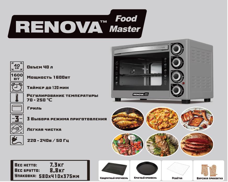 Электропечь Renova MO-40GTS1 (40 л /1600 Вт /серебристый)