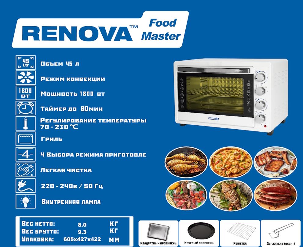 Электропечь Renova MO-45GFLTW1 (45 л /1800 Вт /белый) - Интернет-магазин У Гриши: бытовая техника, электроника, товары для дома и др.