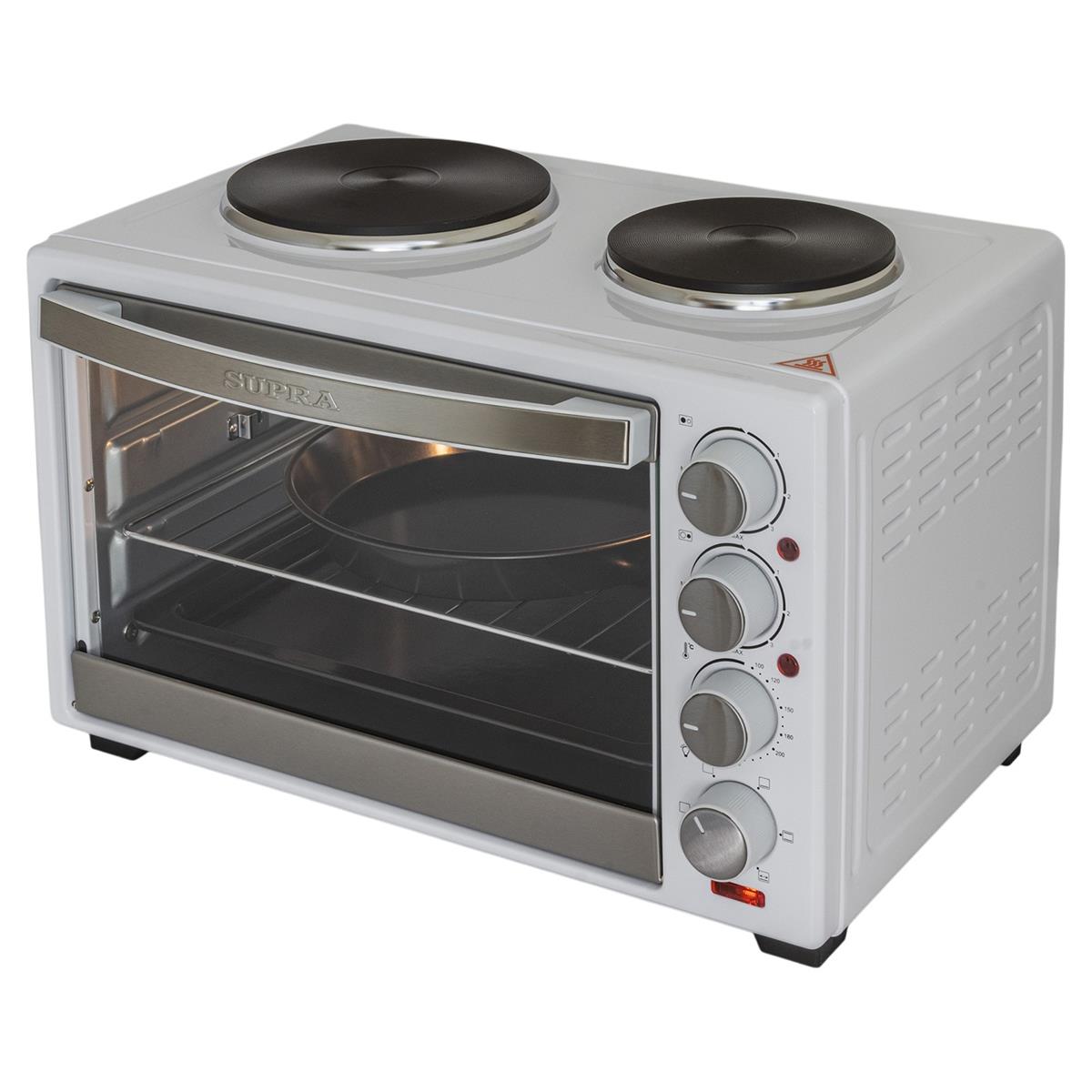 Электропечь SUPRA MTS-3340 — это компактная настольная мини-печь мощностью 1800 Вт, оснащенная конфорками мощностью 1000 Вт и 600 Вт. Устройство обеспечивает диапазон температур от 100 до 250 C, позволяя запекать, жарить и разогревать блюда. Подходит для небольших кухонь, дач или общежитий, предлагая функциональность полноценной плиты в миниатюрном формате.