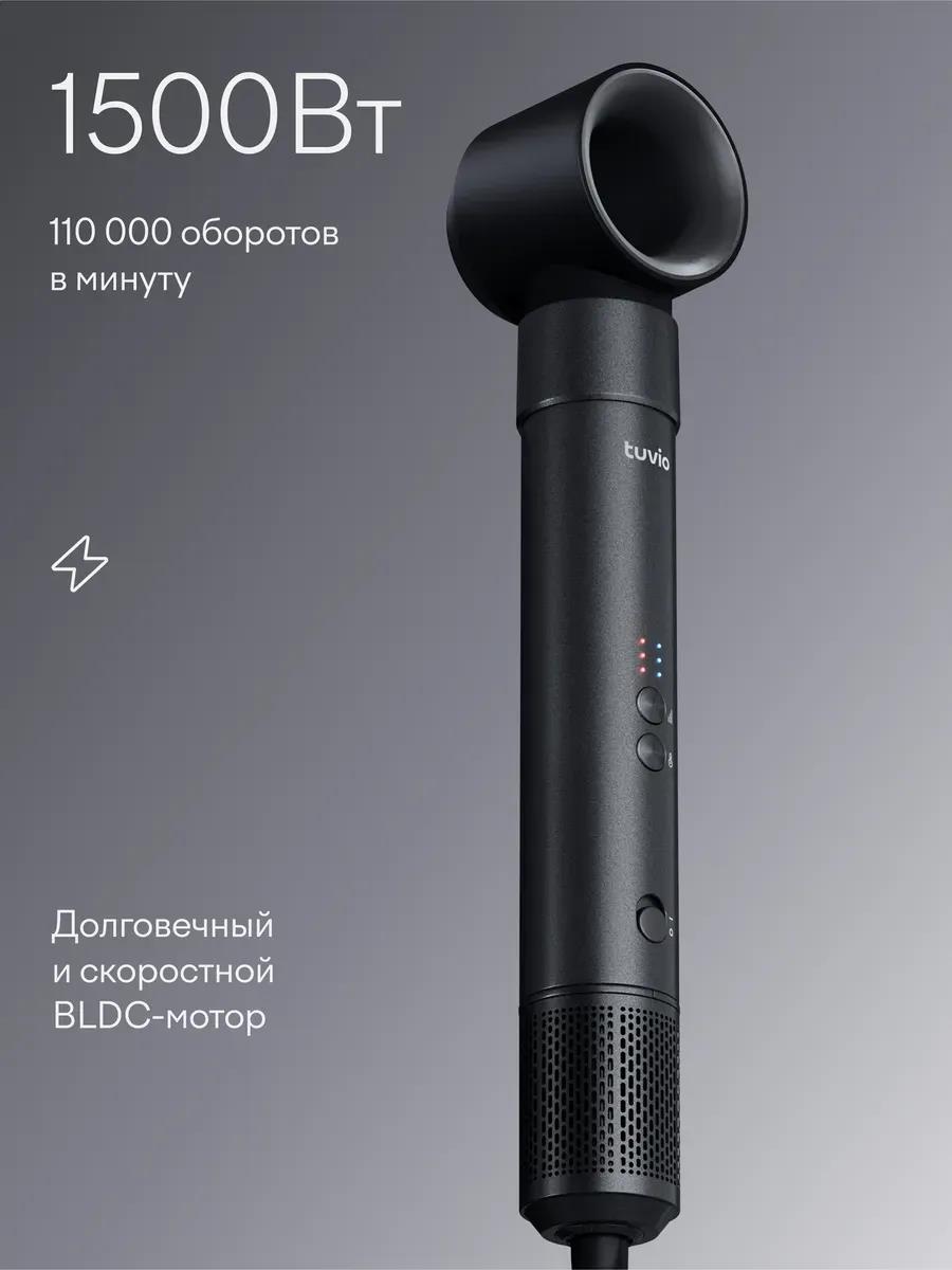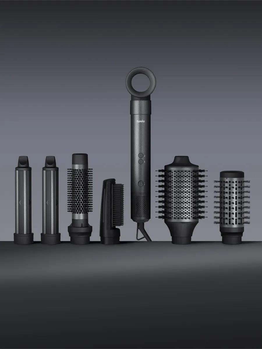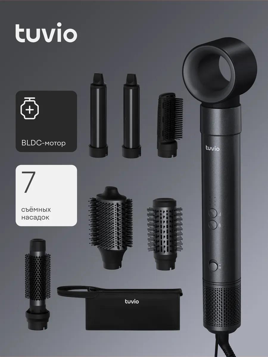 Фен-щетка Tuvio HBI1412, 7 насадок, сумка для хранения (1500 Вт /темный металл)
