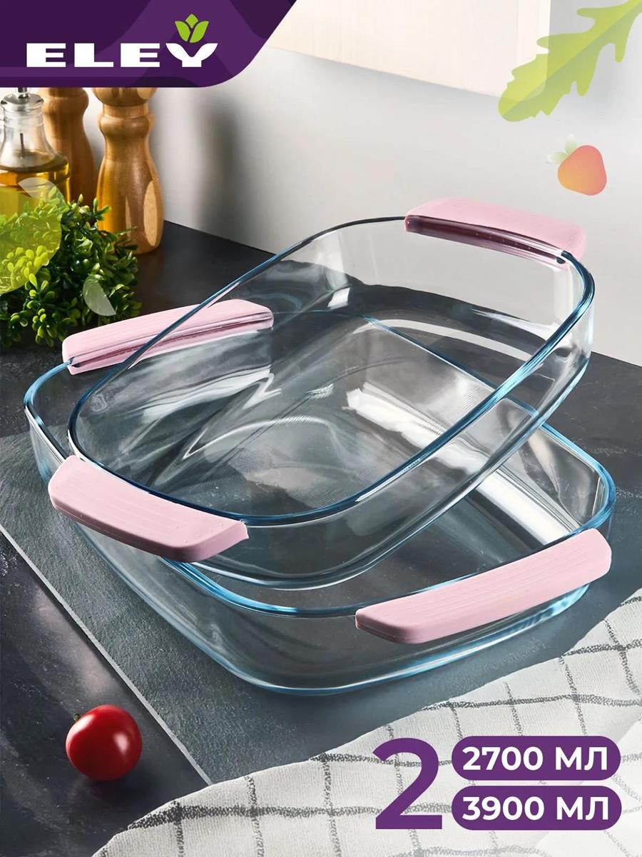 Набор форм для запекания Eley ELST9025P Объем: 2700 мл, размер: 353х223х61 мм Объем: 3900 мл, размер: 389х225х64 мм. Специальные силиконовые ручки позволяют взаимодействовать с посудой без дополнительных аксессуаров,сохраняя ваши руки от ожогов.