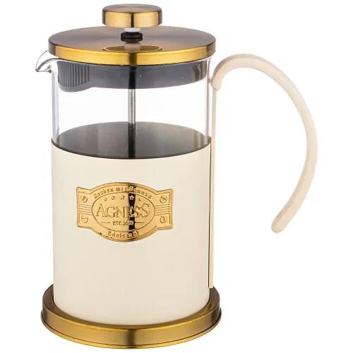 Френч-пресс AGNESS 894-101 PARADISE, 600 мл,золотистый, бежевый