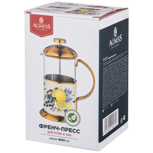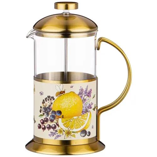 Френч-пресс AGNESS 894-131 ПРОВАНС ЛИМОНЫ, 600 мл,прозрачный, золотистый