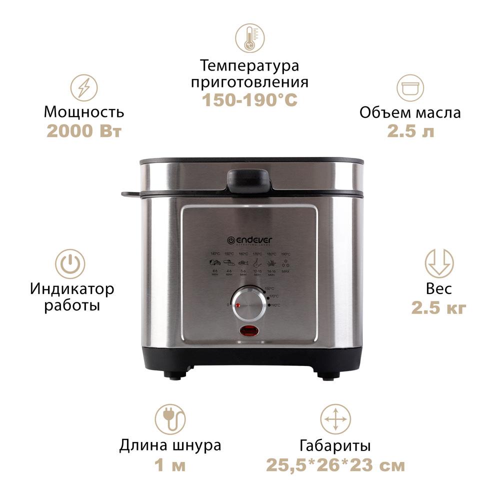 Фритюрница Endever Skyline FR-113 (2,5 л 2000 Вт серебристый, черный)