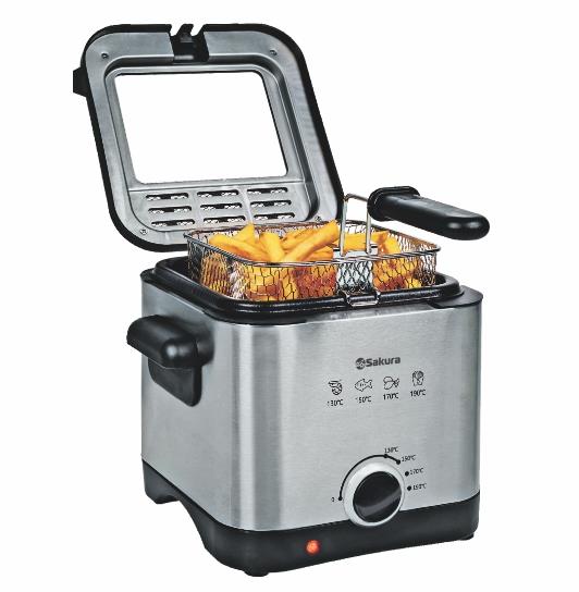 Мощность (Вт) 1000, объем чаши 1,5 л, регулируемый термостат, максимальная температура 190°, антипригарное покрытие чаши для масла, фильтр для устранения запахов, индикатор работы, индикатор нагрева, съемная крышка со смотровым стеклом, корзины для жарки. Защита от перегрева. Резиновый шнур 3x0.75mm², длина шнура 1,0 м. Термоизолированный корпус из нержавеющей стали.