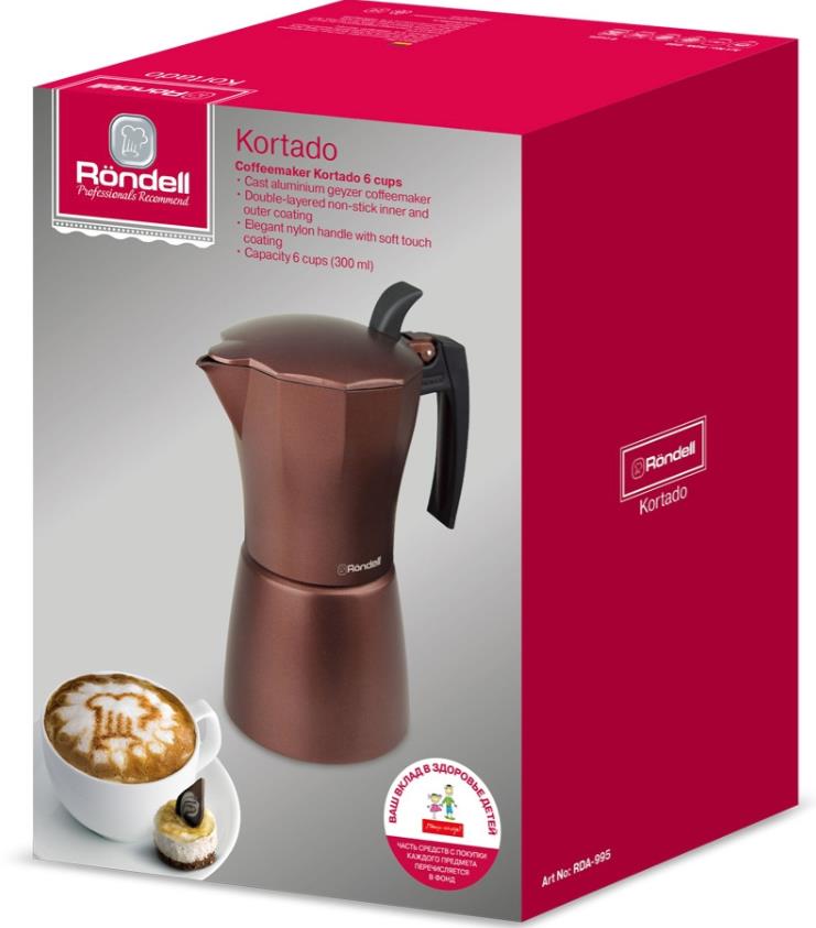 Гейзерная кофеварка Rondell Kortado RD-995 (BN) коричневый, 0,3 л. (0,3 л ) - Интернет-магазин У Гриши: бытовая техника, электроника, товары для дома и др.