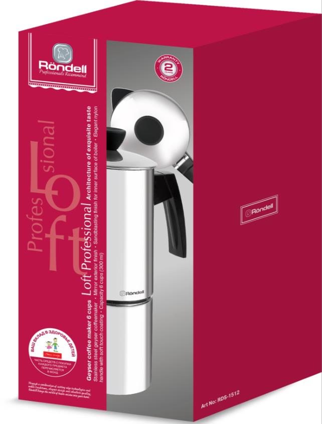 Гейзерная кофеварка Rondell Loft Professional RDS-1512 (ST) стальной, 0.3 л. (0,3 л ) - Интернет-магазин У Гриши: бытовая техника, электроника, товары для дома и др.
