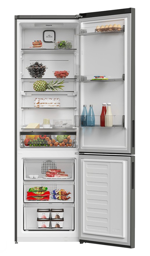 Hotpoint HDKP 7201 NG — это современный двухкамерный холодильник с нижней морозильной камерой, выполненный в темно-сером цвете (графит). Модель отличается большой высотой (201 см) и наличием системы No Frost.