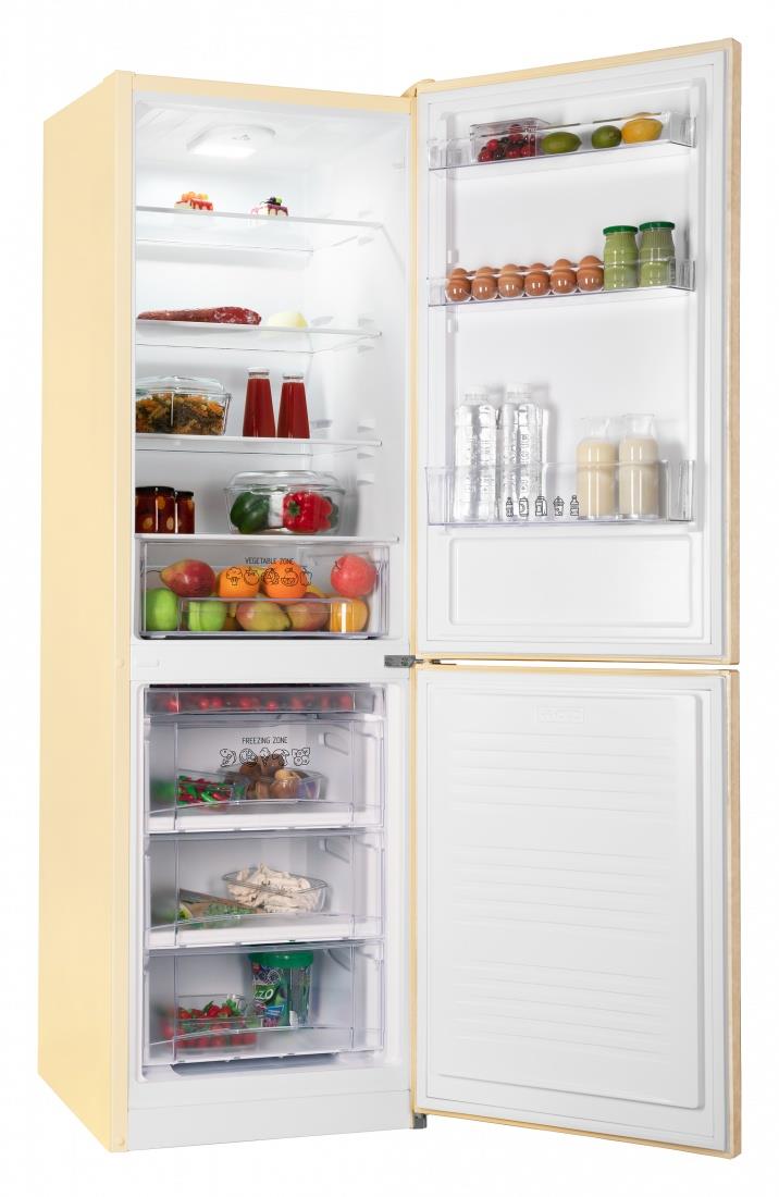 Двухкамерный отдельностоящий холодильник NORDFROST NRB 162NF Me с нижним расположением морозильной камеры имеет общий объем 310 л. Модель выполнена в стильном и лаконичном дизайне, в цвете мрамор бежевый. Холодильник высотой 188 см подойдет в интерьер, как современной, так и классической кухни. Модель с системой охлаждения Frost Free сочетает капельную систему оттаивания в холодильном отделении и систему размораживания No Frost в морозильном. Воздух, циркулирующий в камерах, не смешивается, благодаря чему показатели температуры и влажности остаются неизменными и комфортными для лучшего сохранения продуктов.