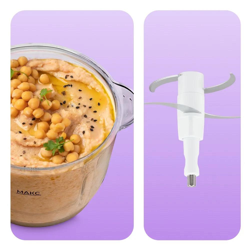Измельчитель КТ-3534 — устройство для быстрого измельчения мяса, твердого сыра, овощей, трав, чеснока, ягод и многих других продуктов. Два блока двойных ножей измельчают ингредиенты практически по всей высоте чаши.