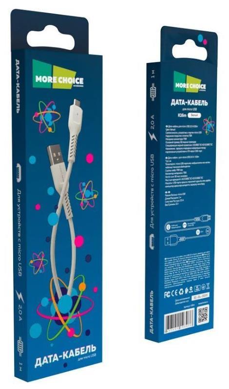 Кабель соединительный More Choice K16m USB 2.0 A Micro USB 2.0 B белый 1 м