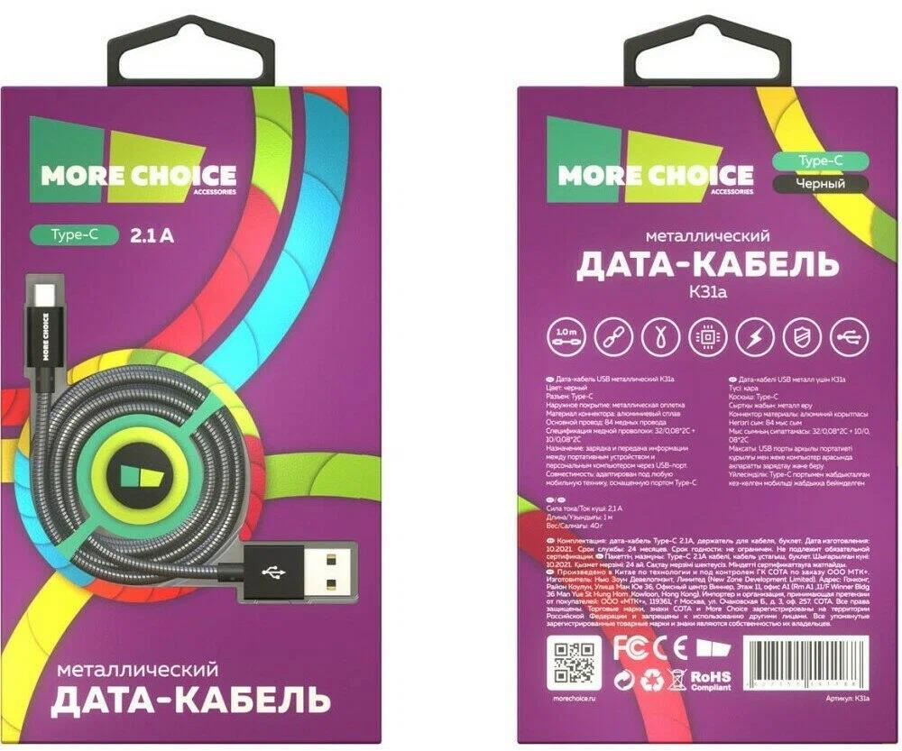 Кабель соединительный More Choice K31a USB 2.0 A USB Type-C черный 1 м - Интернет-магазин У Гриши: бытовая техника, электроника, товары для дома и др.