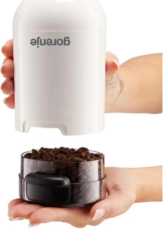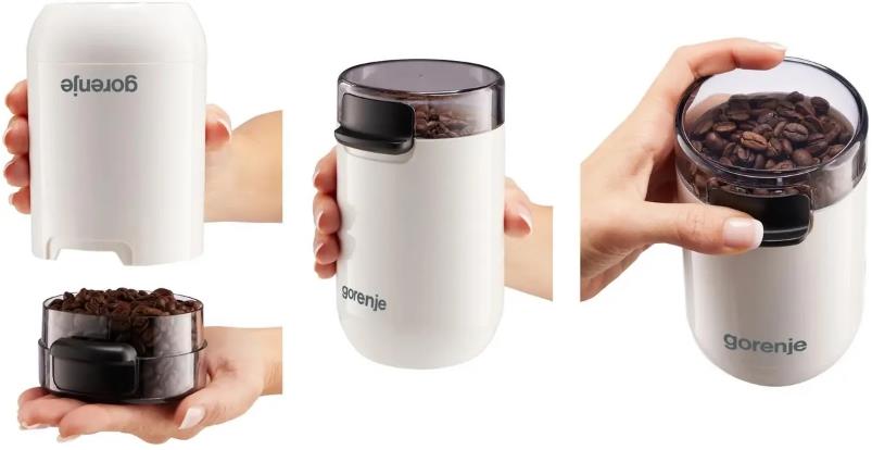 Кофемолка Gorenje SMK150SW — идеальное решение для любителей свежезаваренного кофе. Это устройство отличается стильным дизайном и функциональностью, становясь незаменимым помощником на вашей кухне. Простой и элегантный белый цвет устройства подчеркивает его современный стиль, а компактные размеры (высота 21.5 см, ширина 8.5 см, глубина 10.5 см) позволяют разместить его практически в любом пространстве. Устройство оснащено ротационным ножом и имеет объем загрузки 45 грамм, что позволит вам приготовить до 6 порций ароматного напитка за один раз. Мощность подключения в 150 Вт обеспечивает быстрое и эффективное измельчение зерен, сохраняя при этом все вкусовые качества напитка. Материал корпуса кофемолки Горение SMK150SW — пластик, что делает ее легкой и удобной в использовании. Помольная чаша выполнена из нержавеющей стали, что гарантирует ее долговечность и простоту в уходе. Устройство имеет вес всего 0.5 кг, что делает его легко переносимым и удобным для хранения. Удобство использования обеспечивается наличием кнопки ВКЛ./ВЫКЛ. с предохранителем, что обеспечивает безопасность при использовании устройства.