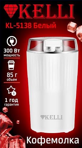 Кофемолка Kelli KL-5138 (85 г/300 Вт /белый) - Интернет-магазин У Гриши: бытовая техника, электроника, товары для дома и др.