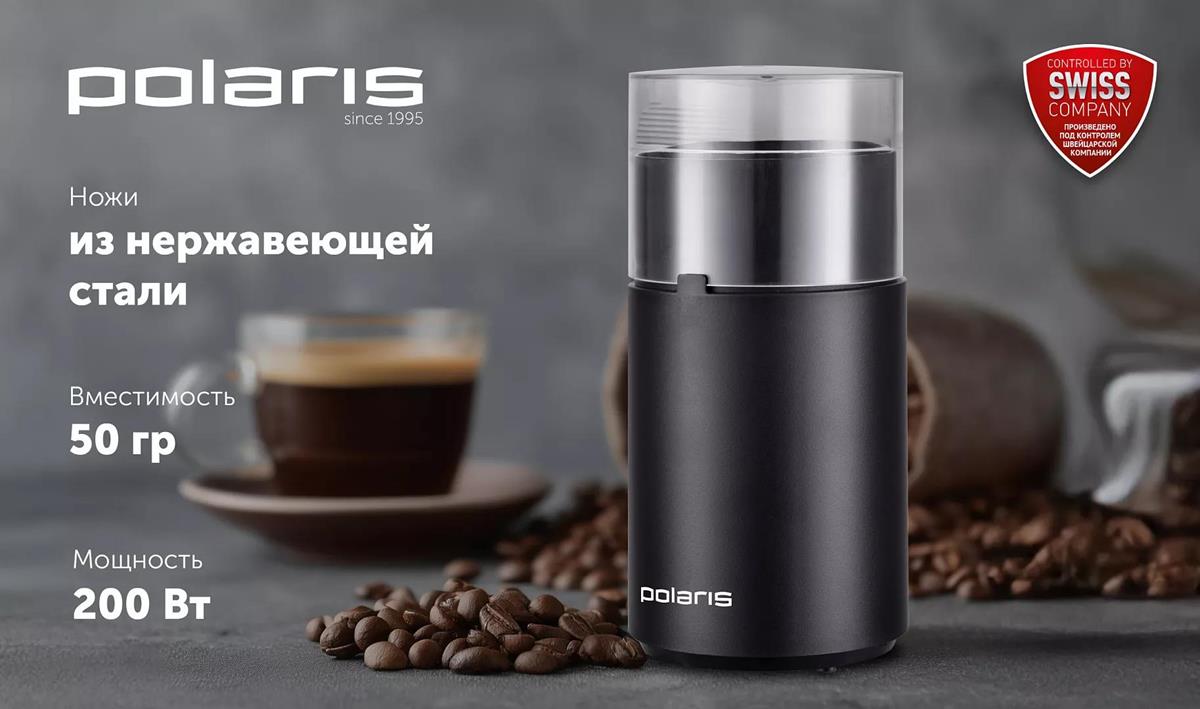 Кофемолка Polaris PCG 2015 200Вт сист.помол.:ротац.нож вместим.:50гр (50 г/200 Вт /черный) - Интернет-магазин У Гриши: бытовая техника, электроника, товары для дома и др.