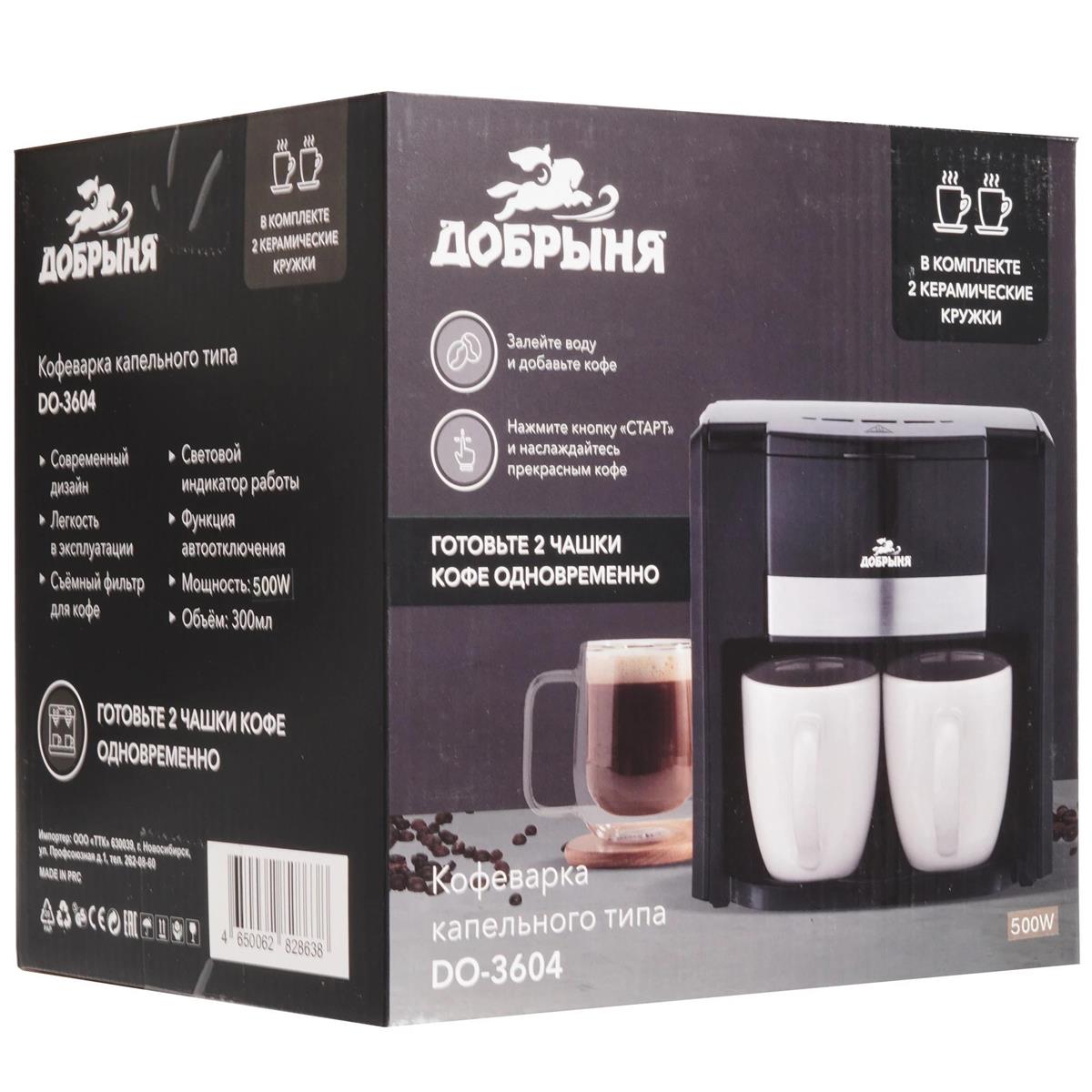 Кофеварка Добрыня DO-3604 (0,3л, 500Вт) 2кружки (капельная/0,3 л /500 Вт ) - Интернет-магазин У Гриши: бытовая техника, электроника, товары для дома и др.
