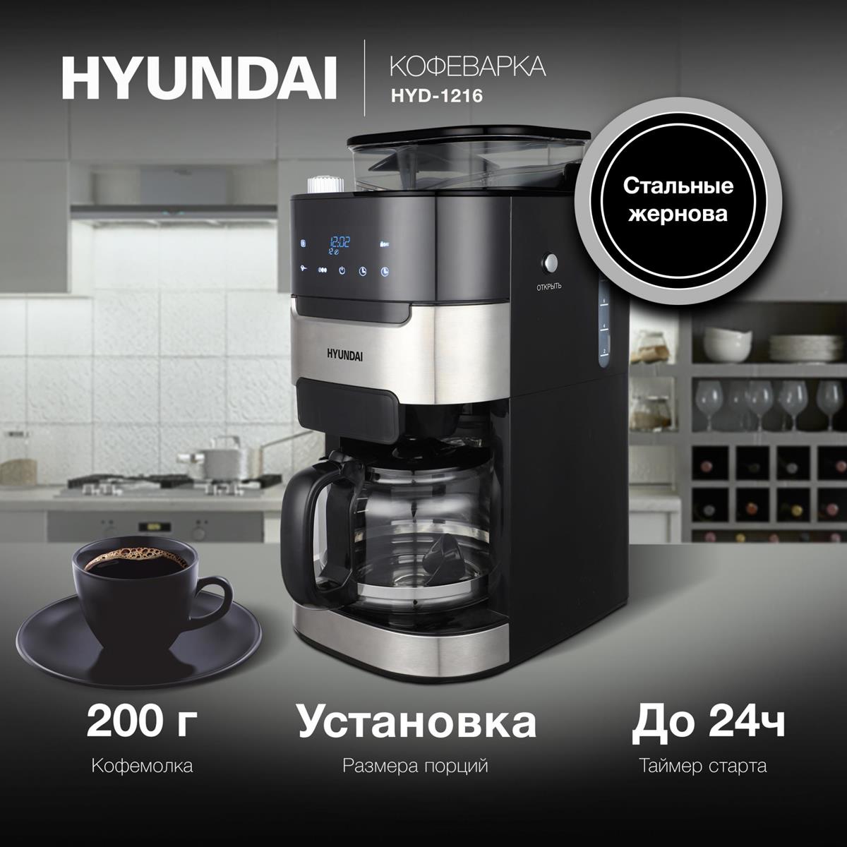 Кофеварка Hyundai HYD-1216 черный/серебристый (капельная/1,5 л /1050 Вт ) - Интернет-магазин У Гриши: бытовая техника, электроника, товары для дома и др.