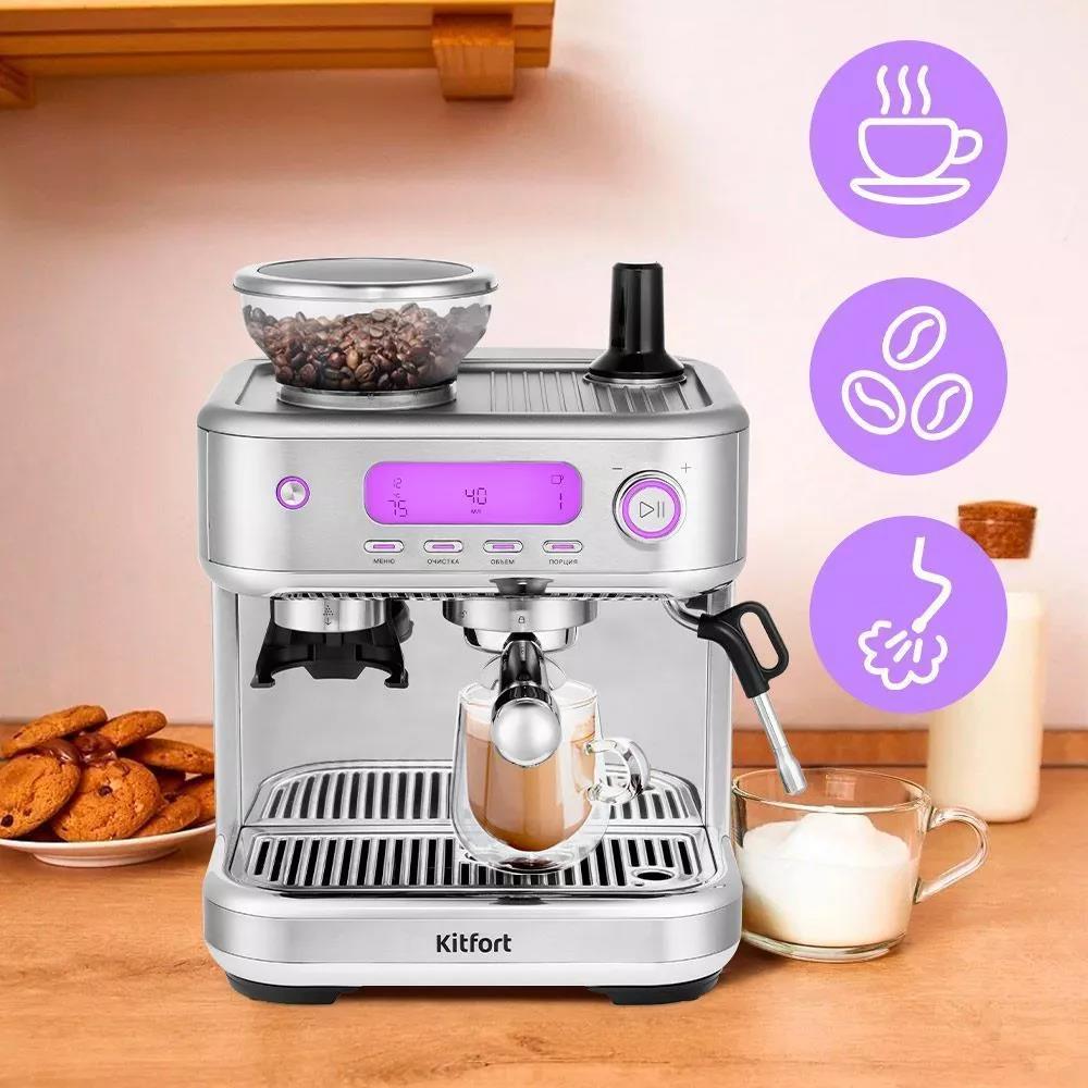 Кофеварка Kitfort КТ-7113 нержавеющая сталь (рожковая//1770 Вт )