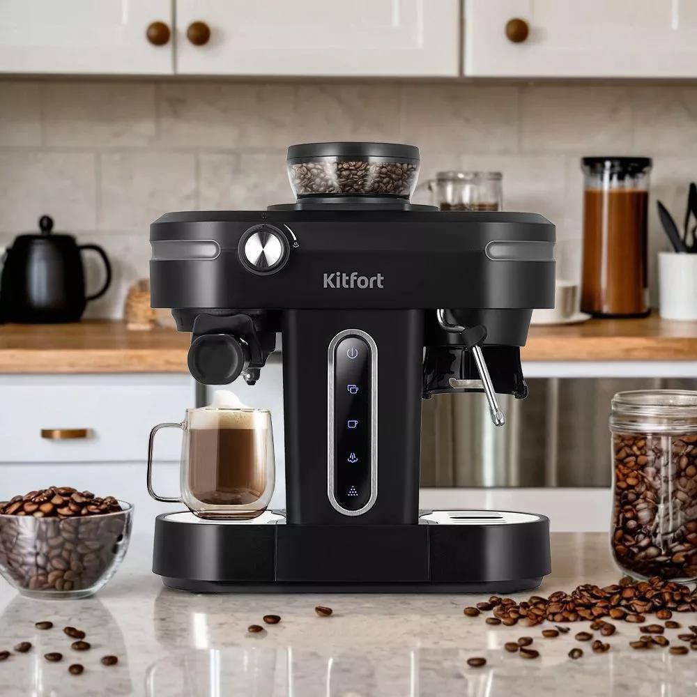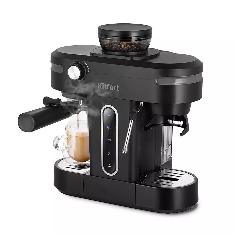 Кофеварка Kitfort КТ-7375 черный (рожковая//1150 Вт ) - Интернет-магазин У Гриши: бытовая техника, электроника, товары для дома и др.