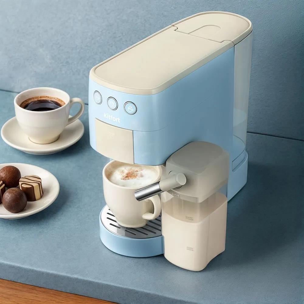 Кофеварка Kitfort КТ-7466 голубой/белый (рожковая//1450 Вт )