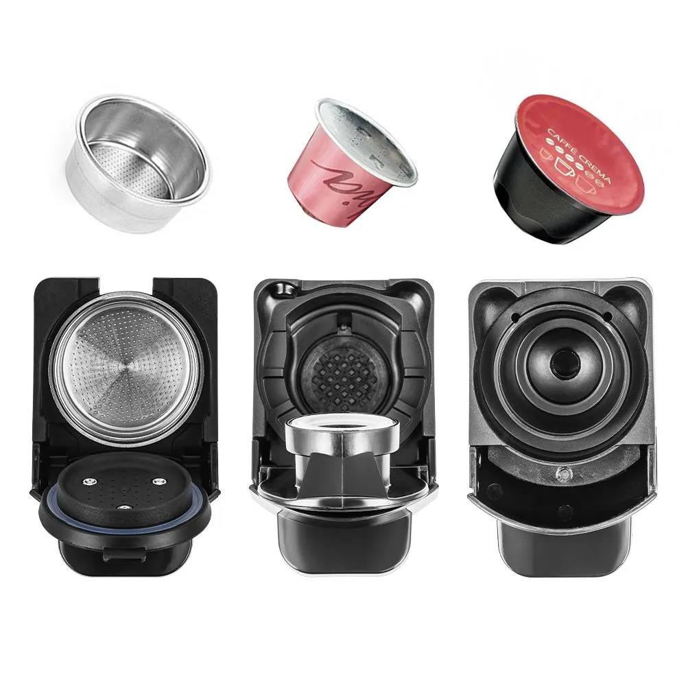 Благодаря адаптерам кофеварка подходит для капсул типа Nespresso и Dolce Gusto, а также для молотого кофе.