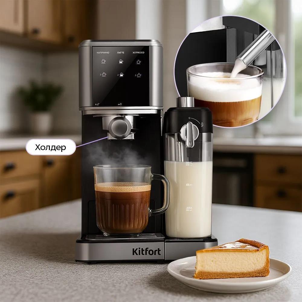 Кофеварка Kitfort КТ-7693 1350Вт нержавеющая сталь/черный (рожковая/1 л /1350 Вт ) - Интернет-магазин У Гриши: бытовая техника, электроника, товары для дома и др.