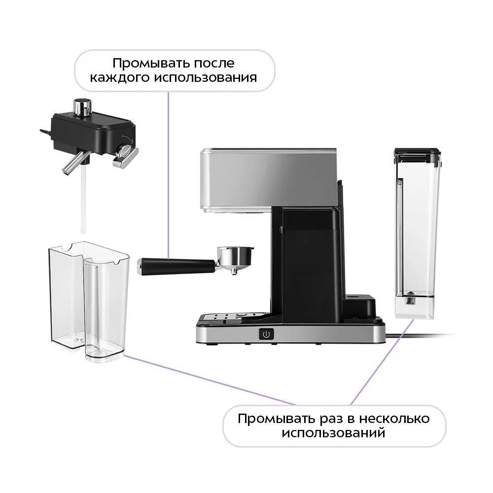 Кофеварка Kitfort КТ-7693 1350Вт нержавеющая сталь/черный (рожковая/1 л /1350 Вт )