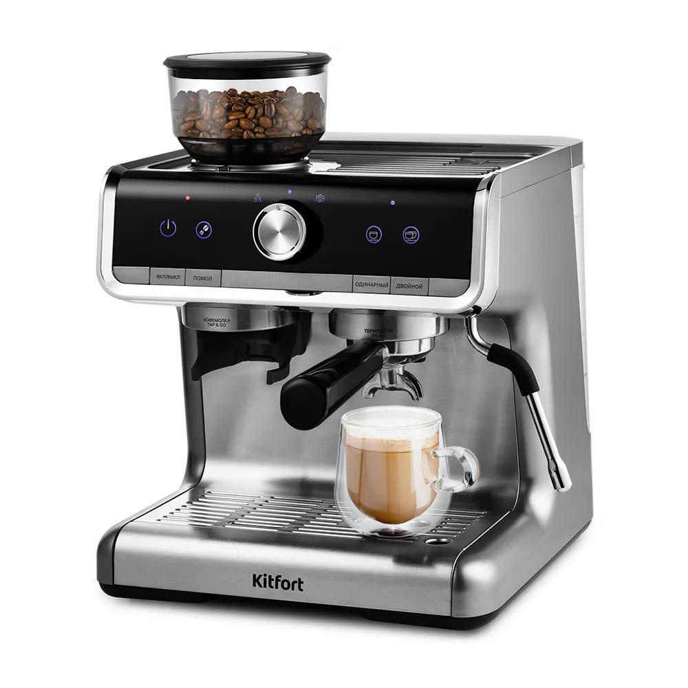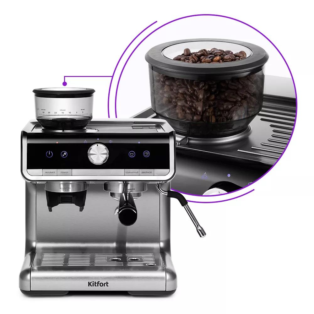 Кофеварка Kitfort КТ-789 серебристый, зерновой/молотый, 2.8 л, 1550 Вт, 15 Бар (рожковая/2,8 л /1550 Вт ) - Интернет-магазин У Гриши: бытовая техника, электроника, товары для дома и др.