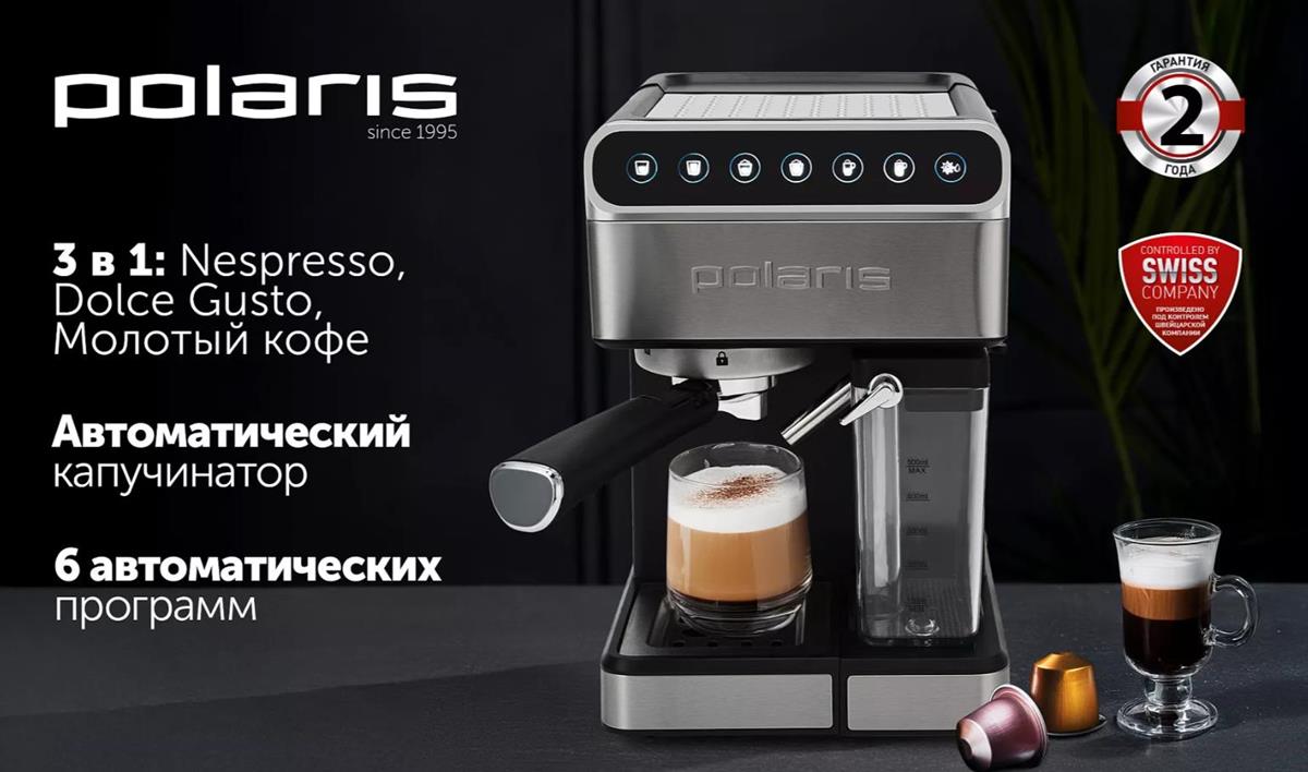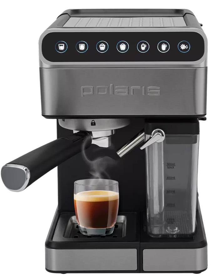 Кофеварка Polaris PCM 1535E черный/серебристый (рожковая//1400 Вт ) - Интернет-магазин У Гриши: бытовая техника, электроника, товары для дома и др.