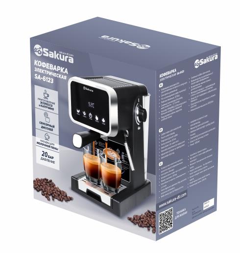 Кофеварка Sakura SA-6123 1050 Вт 1,3 л 20 бар, серебряный/черный (рожковая/1,3 л /1050 Вт ) - Интернет-магазин У Гриши: бытовая техника, электроника, товары для дома и др.