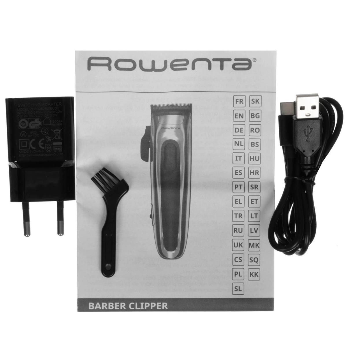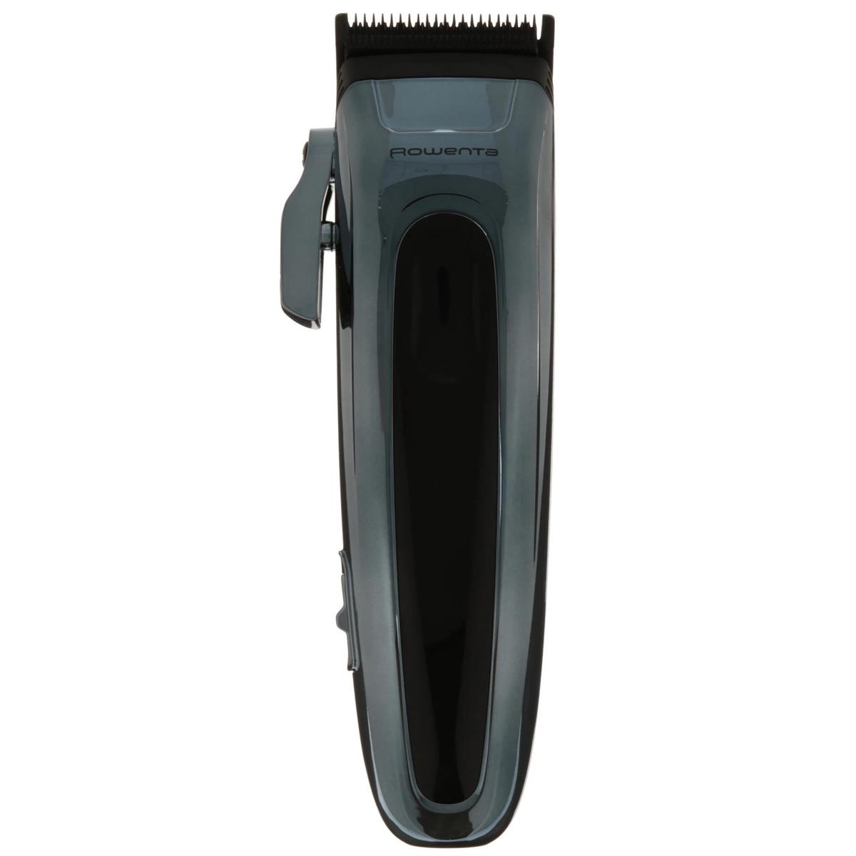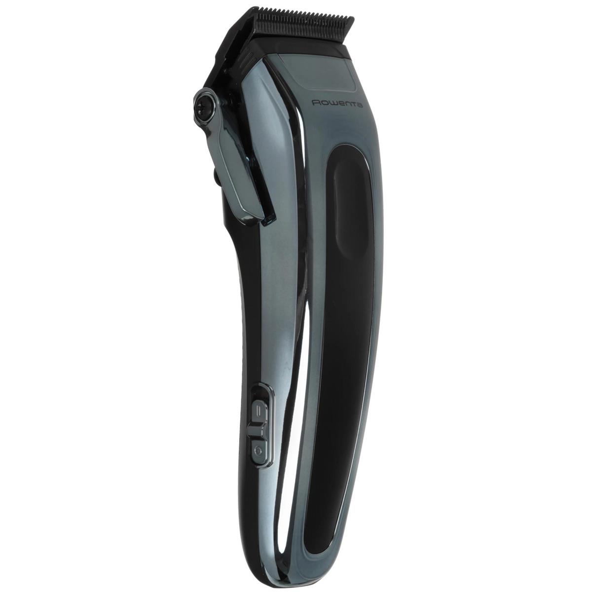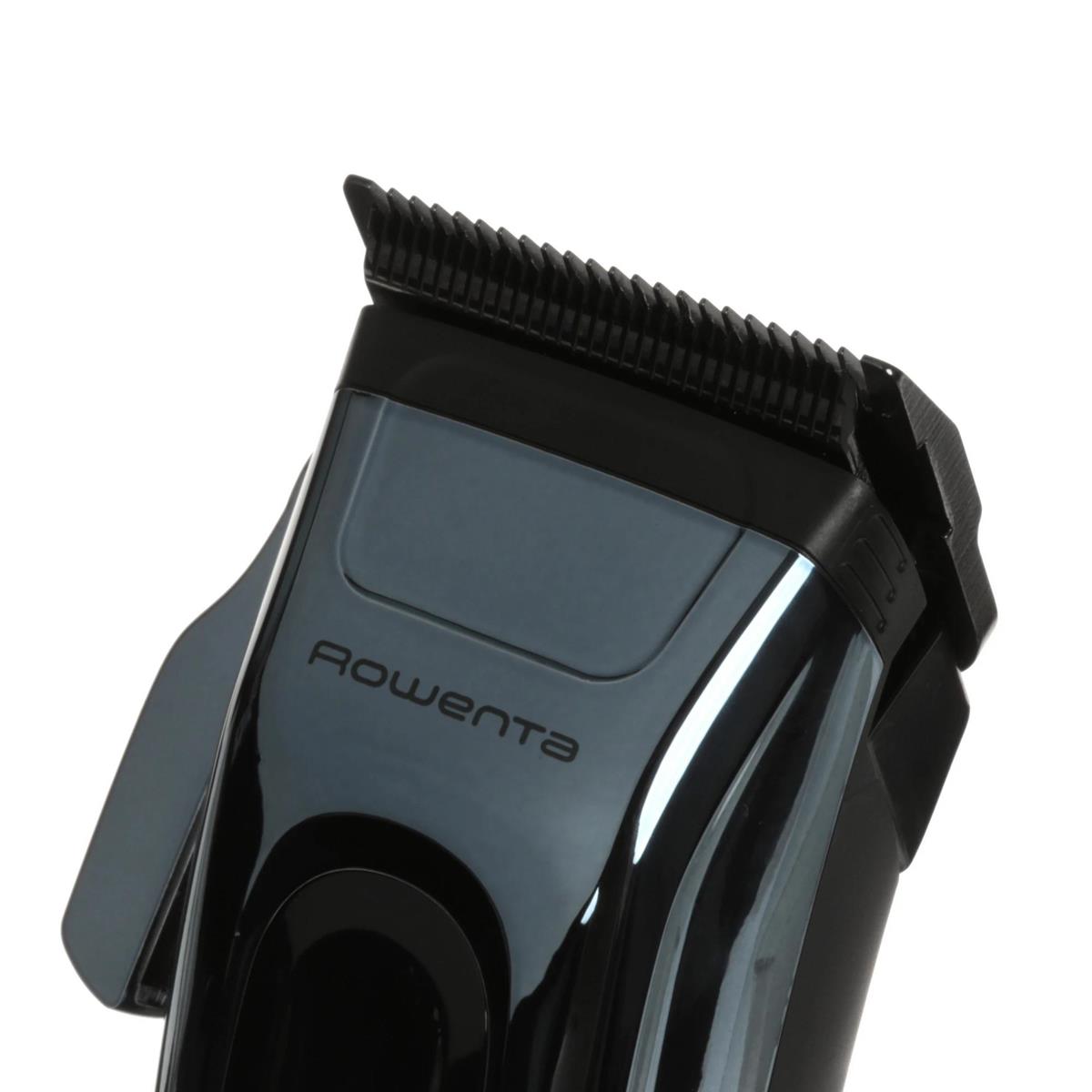 ROWENTA TN1551E0 Barber Experience – машинка для стрижки бороды и усов, головы. С помощью смены насадок вы можете настраивать длину от 0.5 мм (без насадки) до 25 мм. Самозатачивающиеся ножи требуют регулярной смазки. Насадки можно промывать для очистки от волосков. Аккумуляторная модель выдерживает до 150 минут без подзарядки. При низком заряде устройство можно подключать к сети и продолжать работу.