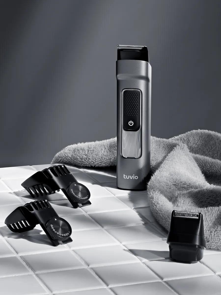 Машинка для стрижки Tuvio HC-BGA7G подходит для удаления и коррекции волос на голове и лице. В комплекте есть 7 магнитных насадок, которые справляются и с грубыми, и с тонкими волосами: 2 телескопические с шагом 1 мм для точной настройки длины среза и 4 обычные для стрижки и филировки. Без насадок машинка работает как триммер.