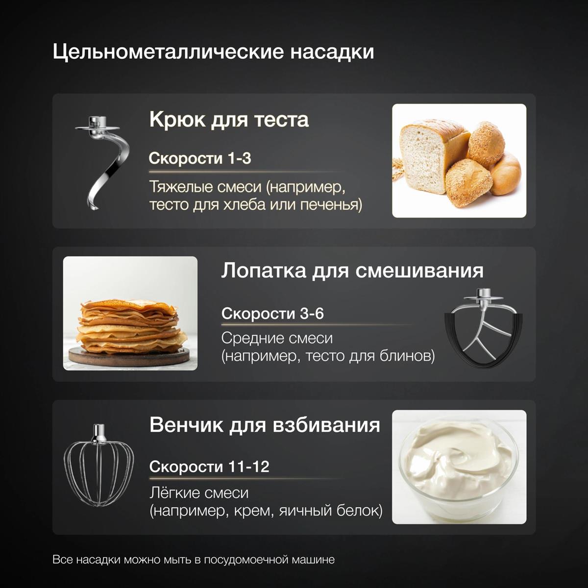 венчик для взбивания, крючки для замешивания теста
