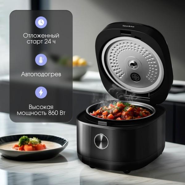 Мультиварка Zigmund & Shtain ZMC-200 – универсальное устройство с 8 автоматическими программами, разнообразными функциями и удобным управлением. Мультиварка ZMC-200 не только заменит плиту, духовку, пароварку и микроволновую печь, но и существенно сократит Ваше пребывание на кухне. Автоматические программы позволяют готовить легко и быстро – Вам остается только выложить продукты в чашу, закрыть крышку и выбрать нужную программу. Сварите в мультиварке суп или борщ, предварительно обжарив продукты в этой же чаше. Приготовьте ароматный плов или рассыпчатую кашу. Тушите нежнейшее мясо или томите ароматные блюда при низких температурах, чтобы добиться эффекта как в русской печи. Функция приготовления на пару позволит сохранить больше питательных веществ и элементов, не ухудшая при этом вкусовые качества блюда. В режиме Выпечка можно выпекать бисквиты, пироги, печенье, пудинги. Самостоятельно приготовьте свежий домашний йогурт с любыми наполнителями с помощью. Режим Мультиповар позволит Вам свободно экспериментировать в приготовлении блюд, выбирая любые настройки температуры и времени. Более того, этот режим позволяет изменять параметры температуры и времени непосредственно в процессе приготовления. Преимущество приготовления в мультиварке состоит в том, что нагревательный элемент устройства обеспечивает равномерный подогрев чаши. Благодаря этому вкус Ваших блюд станет еще ярче и насыщеннее. Вы можете оставлять пищу готовиться в мультиварке без присмотра и не беспокоиться, что блюдо подгорит, выкипит вода или «убежит» каша.