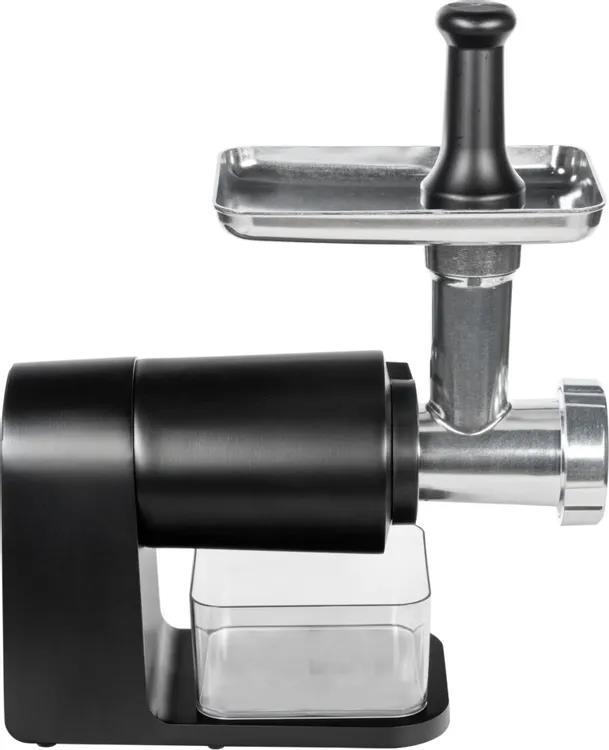 Электрическая мясорубка электрическая с насадками HIBERG MG 990 B – надежный, стильный и многофункциональный помощник на вашей кухне! Черная модель гармонично впишется в любой современный дизайн кухни. Модель способна всего за минуту перемолоть 2 килограмма мяса, благодаря максимальной мощности 2000 Вт и внутреннему острому ножу из нержавеющей стали. Функция реверса запускает обратное вращение шнека, что помогает без труда измельчить даже большие и жилистые куски мяса. Мясорубка обладает мощным металлическим корпусом и алюминиевым загрузочным лотком с удобным толкателем. В комплекте также идут вместительный пластиковый контейнер, 3 решетки и 3 насадки, с помощью которых можно сделать любой фарш, приготовить колбаски, кеббе и даже приготовить домашний томатный сок. Устройство отличается комфортным уровнем шума до 75 дБ. Прорезиненные ножки не дают скользить по поверхности стола во время работы.