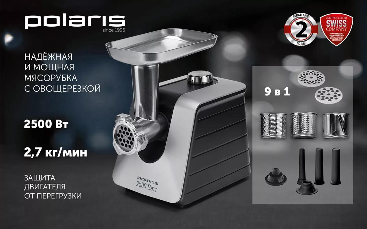 Мясорубка Polaris PMG2561 (2500 Вт /2,7 кг/мин/серебристый, черный) - Интернет-магазин У Гриши: бытовая техника, электроника, товары для дома и др.