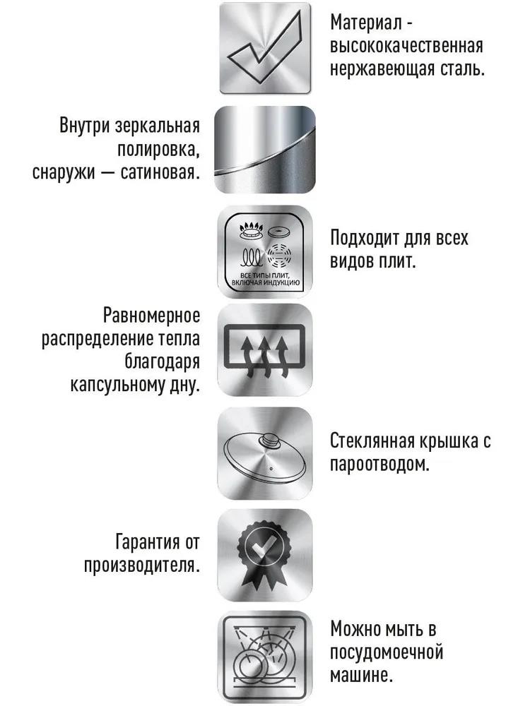 кастрюля со стеклянной крышкой 16х10,5см; 2,2л кастрюля со стеклянной крышкой 18х11,5см; 3,0л кастрюля со стеклянной крышкой 20х12,5см; 4,0л кастрюля со стеклянной крышкой 24х14,5см; 6,6л