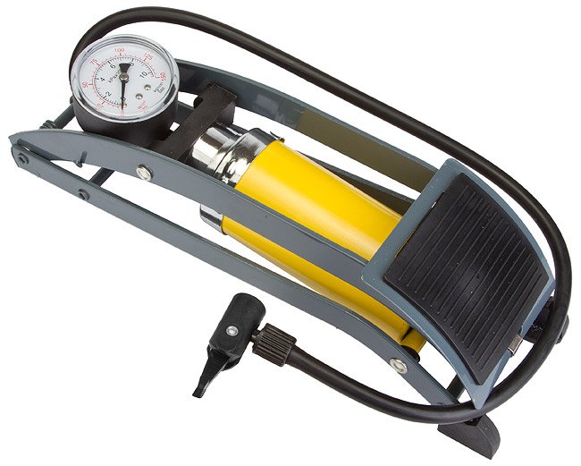 Удобный стационарный ножной насос с манометром Выполнен из стали, оснащен одним цилиндром размерами 55 х 120 мм. Насос имеет шланг с автовентилем Манометр позволит точно отследить давление в покрышках.